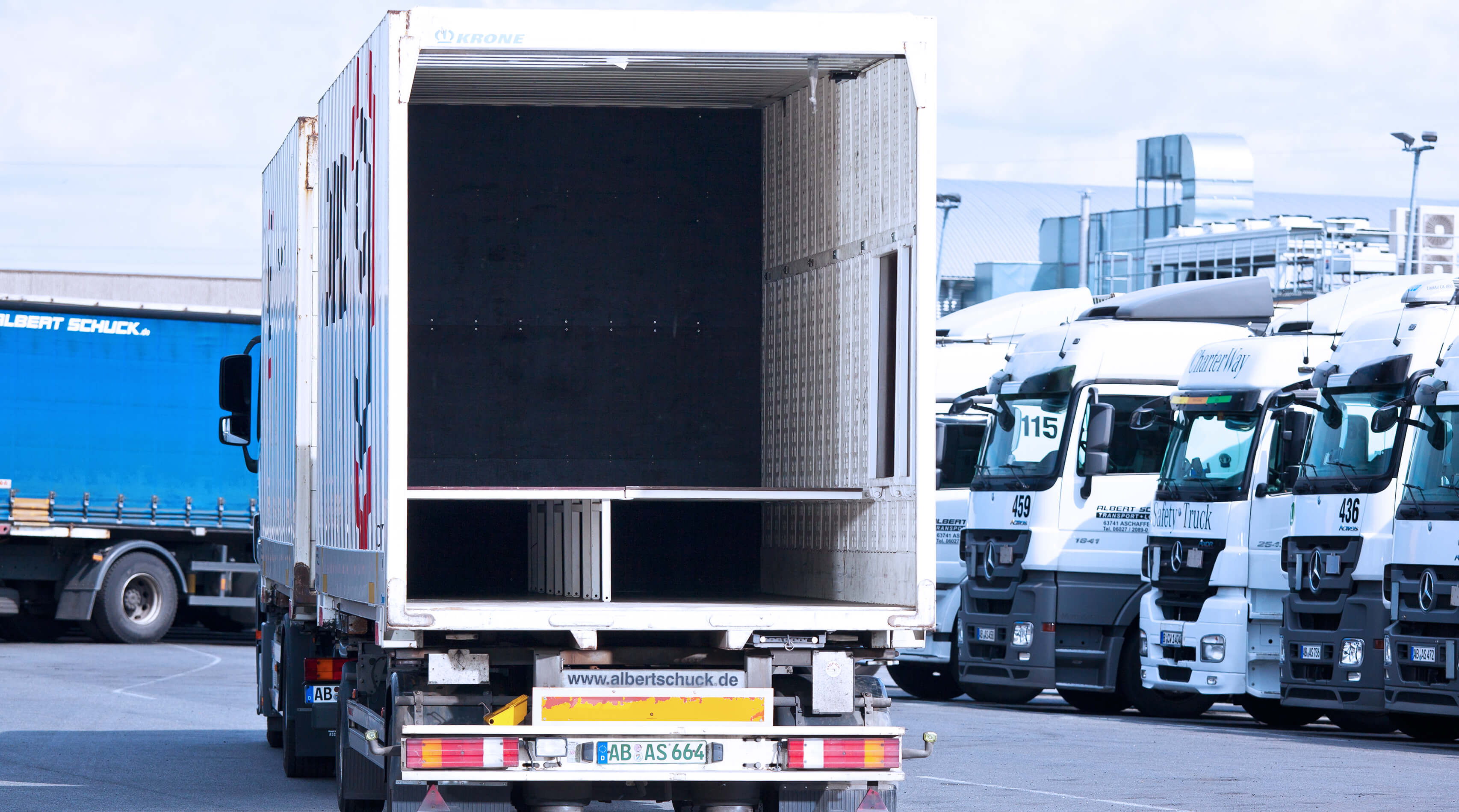 Z kompleksowym wyposażeniem flotowym jesteśmy doskonale przygotowani do niemal wszystkich zadań transportowych. Nasza flota obejmuje nadwozia wymienne BDF, zestawy z przyczepami, w tym z podestami ruchomymi i wyposażeniem ADR, wózki masztowe oraz wyposażenie specjalne (urządzenia przeładunkowe, naczepy do transportu ładunków lotniczych, systemy podwójnej podłogi do przesyłek kurierskich). Każdy pojazd jest oczywiście wyposażony w niezbędne zabezpieczenia ładunku – aby każdy towar bezpiecznie dotarł na miejsce.